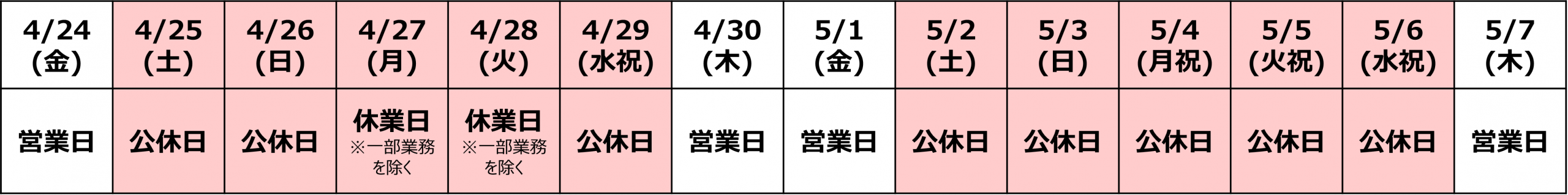 営業日 2026年4月30日(木) ~ 2026年5月1日(金)